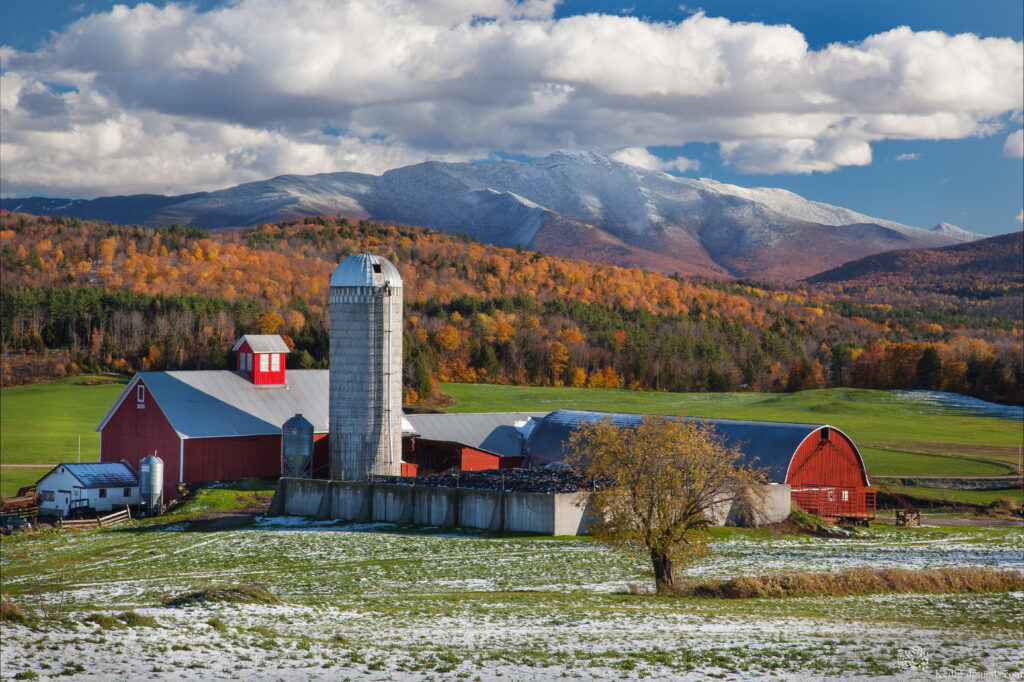 On the road between Cambridge and Fletcher there are a few views of Mansfield off to the side of the road. I didn’t list them here because they lack any interesting elements such as a barn to round out the composition. Sometimes, however you can luck out as I did here. Cows, fall foliage, and a great mountain view were too much to resist. Keep your eyes open. Having some standard locations to go to will help to guarantee that you come home with something usable, but some of the best shots can unexpectedly present themselves in between the destinations that are planned–out.