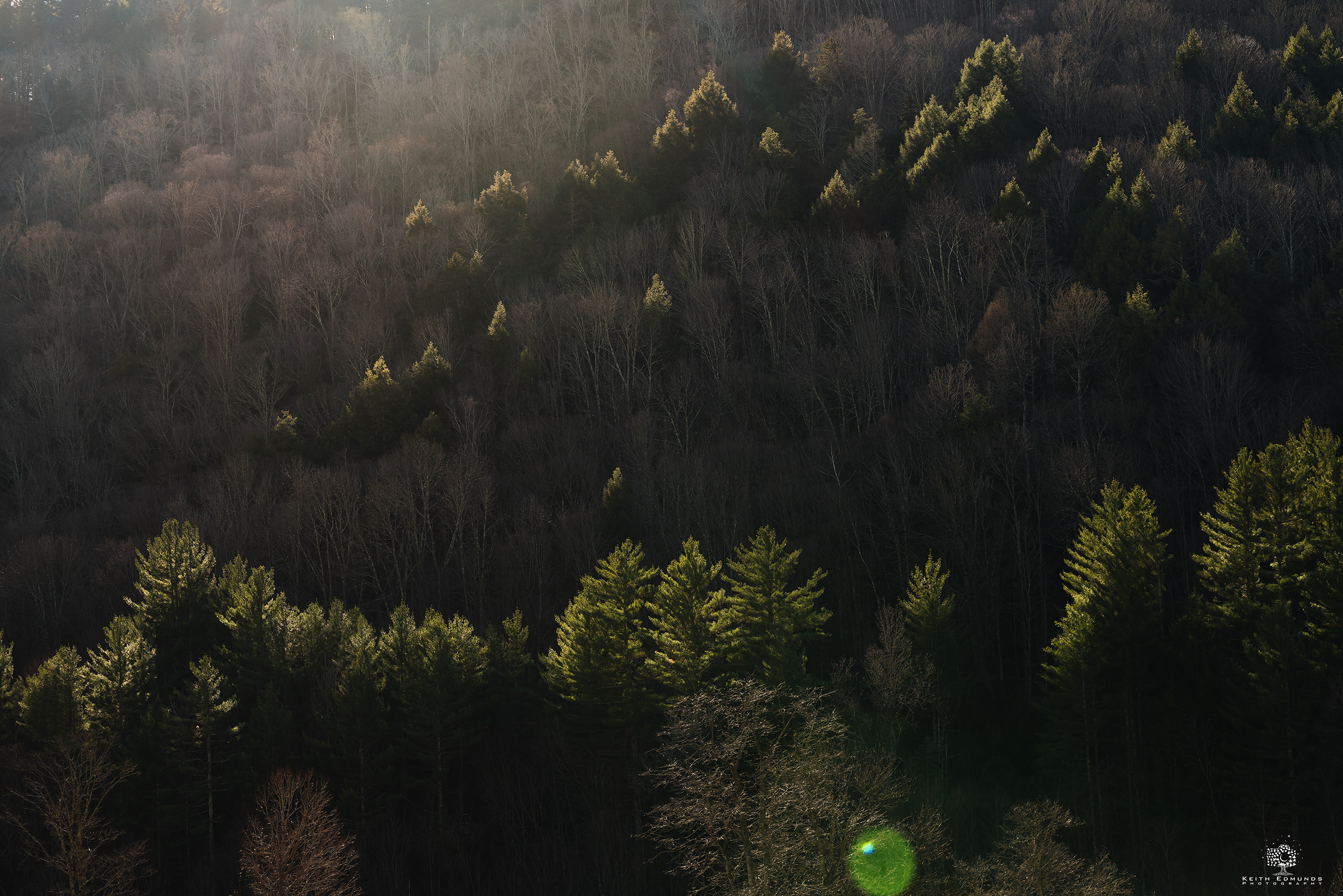 The difference between the fir trees and the stick trees: The sun was setting behind a nearby steep hill just as it was ducking under the ridge. You don’t always have to wait for the perfect time to catch light like this if you have a hill nearby, which is highly likely if you are taking a picture of a nearby hill. By going uphill you can make the sunset last longer and even bring it back above the horizon. That’s the same way that you find where the sun is just peeking over. Just look for the line on the ground where sunlight meets the shadow. That’s the spot where the sun will be peeking over at you like this. But even without the sunlight then the difference between the bare sticks and full fir trees is often a good shot, especially after the first dusting of snow or hoarfrost.